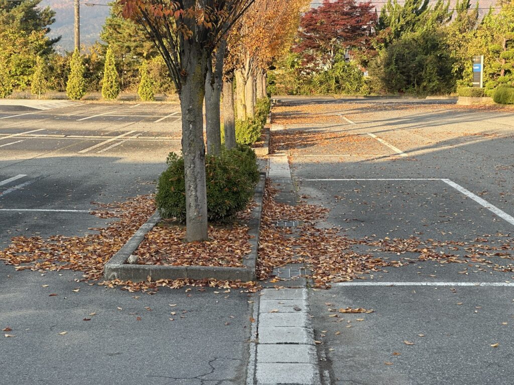 山形県長井市にある山形本社工場にはたくさんの植栽や樹木があり、四季折々の風景を楽しめます。本日11月7日は立冬、樹木たちも紅葉を過ぎて早くも落葉が進んでいます。毎年、社員の有志の方々が朝の始業前に落ち葉の自主清掃をして下さっています。おかげで駐車場やお客様玄関、社員玄関もきれいで気持ちの良い環境になっています。感謝です!